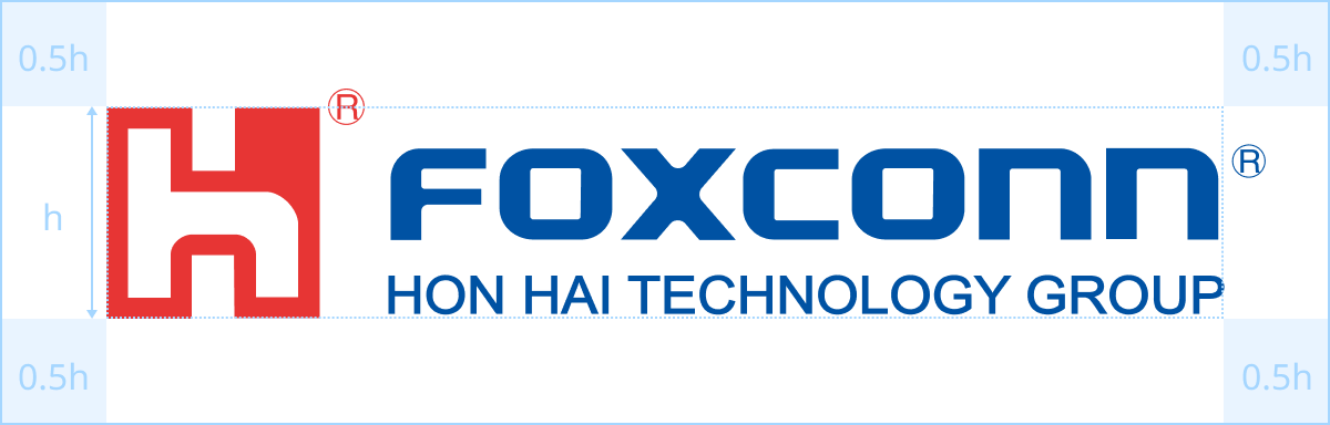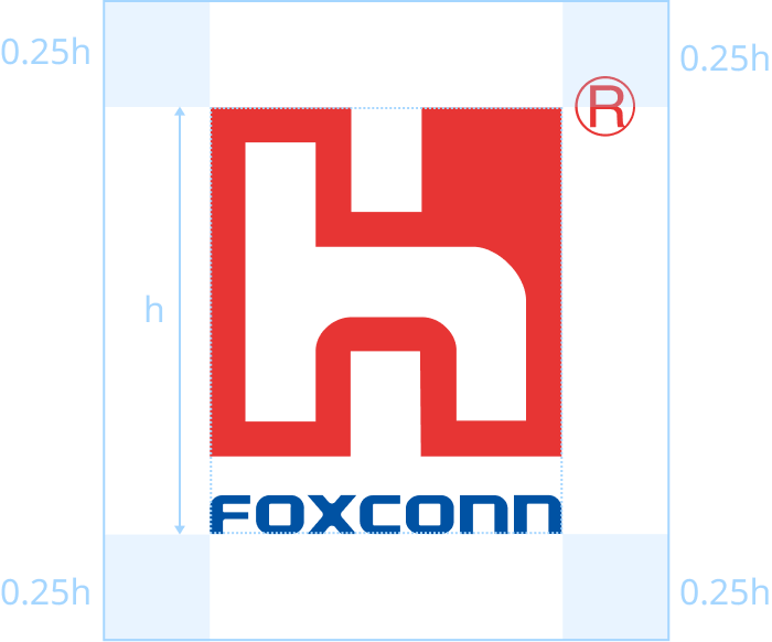 鸿海商标、HON HAI 商标、Foxconn 商标、尊龙时凯商标边缘必须保留商标高度0.5h的空间。
