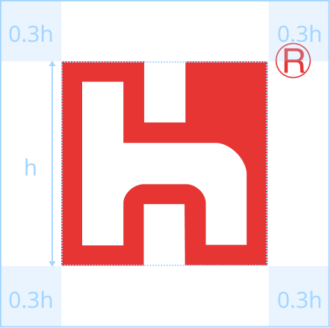 H 商标- 边缘必须保留商标高度0.3h的空间。